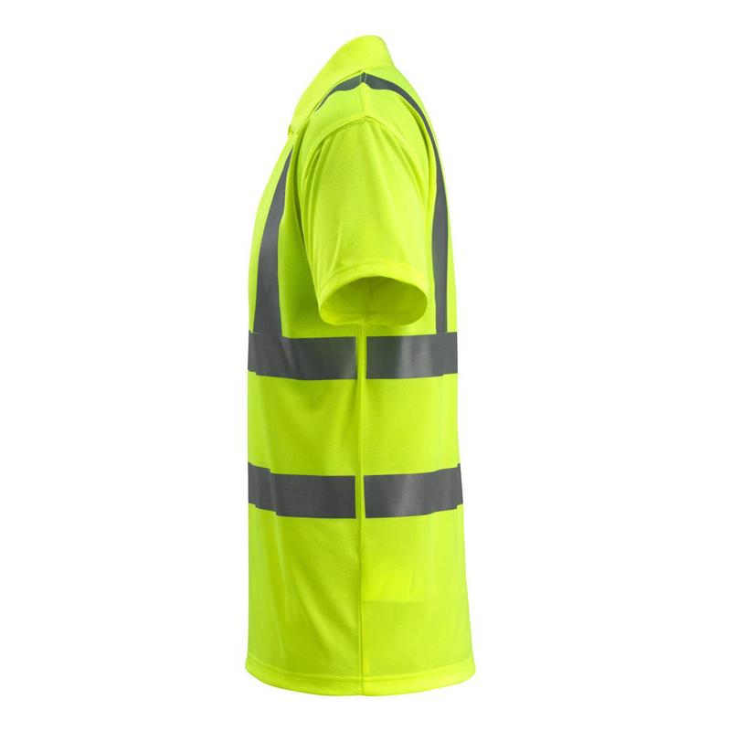 Hochwertiges, fluoreszierendes Polo-Shirt mit vertikalem und horizontalem Reflexband für optimale Sichtbarkeit und Sicherheit.