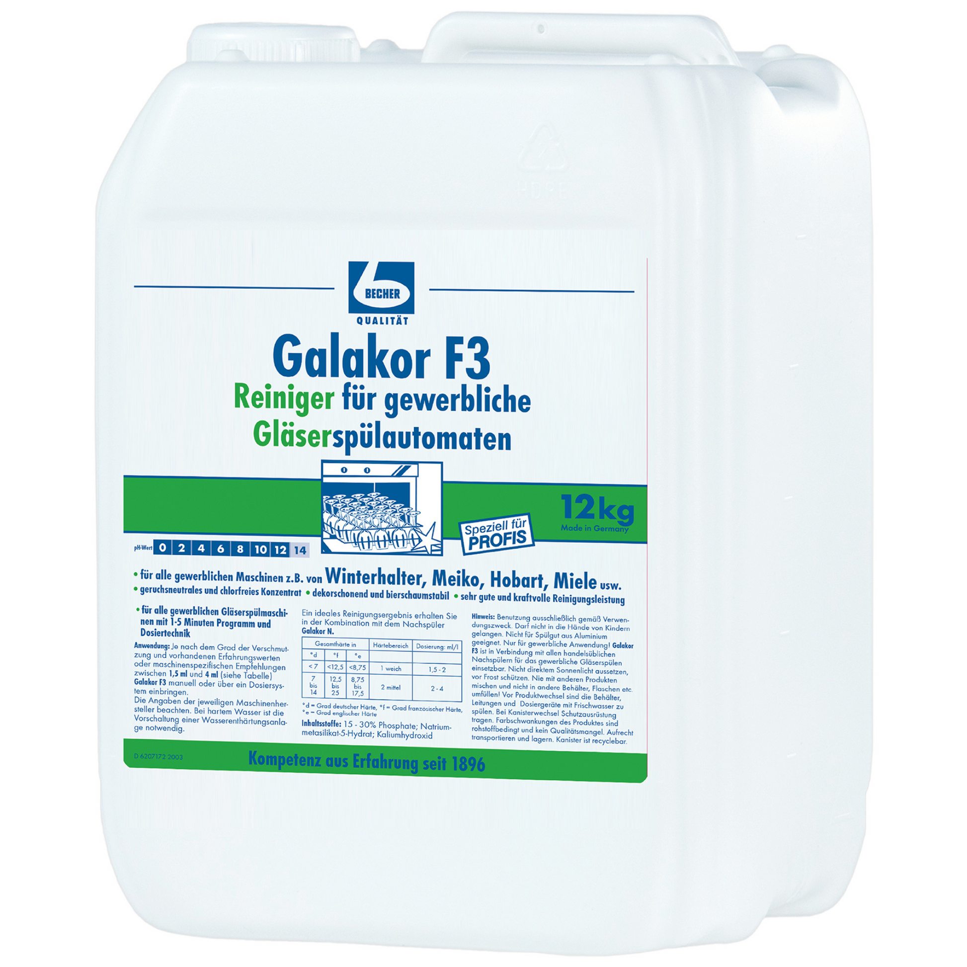 Dr. Becher Galakor F3 Glasspülmaschinen-Reiniger - 12 kg Kanister | Kanister (9300 ml)