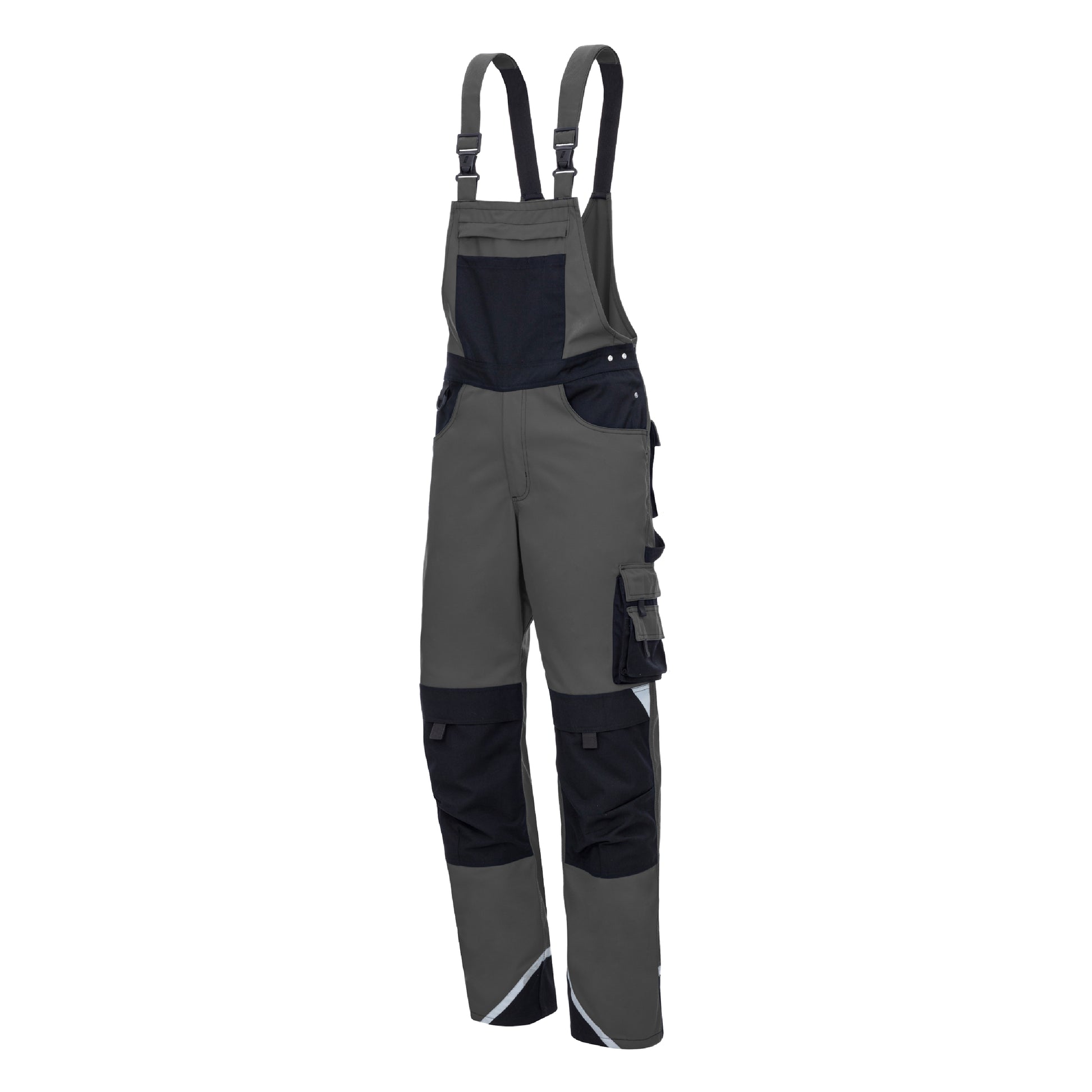 Die NITRAS MOTION TEX PLUS Latzhose in grau / schwarz (Farbcode: 1210) ist die perfekte Wahl für alle, die bei ihrer Arbeitskleidung keine Kompromisse eingehen möchten. Mit einem Gewicht von 280 g/qm bietet sie ein atmungsaktives Material, das hohen Tragekomfort gewährleistet. Der dehnbare Bund sorgt für eine optimale Passform, während Verstärkungen aus Canvas an den Bein-, Knie- und Gesäßtaschen sowie an der Latz-Außentasche und den Beinabschlüssen für zusätzliche Strapazierfähigkeit sorgen. Robuste Dreifachnähte und Reflexelemente erhöhen die Sichtbarkeit und Langlebigkeit der Hose. Praktische Extras wie Schenkeltaschen mit Patten, eine Zollstocktasche mit aufgesetzter Tasche, eine Latz-Innentasche mit YKK-Reißverschluss und aufgesetzten Außentaschen bieten zusätzlichen Stauraum. Zudem ist die Latzhose mit Knietaschen für Polster mit Einschub von oben, einer Hammerschlaufe, einem D-Ring, stabilen Clipverschlüssen und elastischen Trägerabschlüssen ausgestattet. Die Latzhose ist OEKO-TEX STANDARD 100® zertifiziert und bietet optionalen Knieschutz 76K (EN 14404).