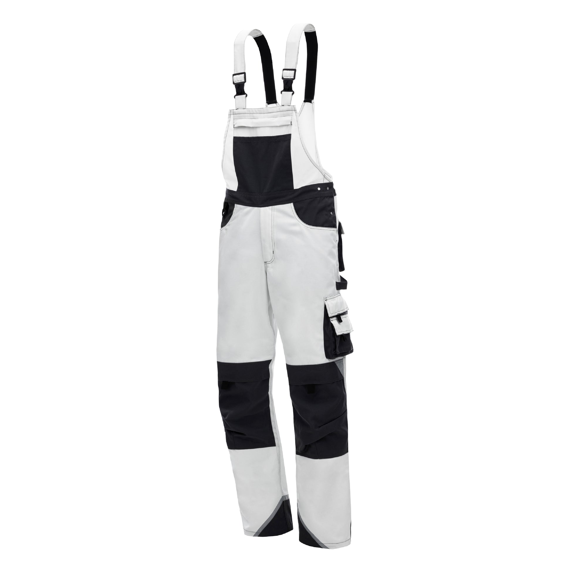 Die NITRAS MOTION TEX PLUS Latzhose in Weiß/Grau bietet maximale Funktionalität, Komfort und Sicherheit für den professionellen Arbeitsalltag.